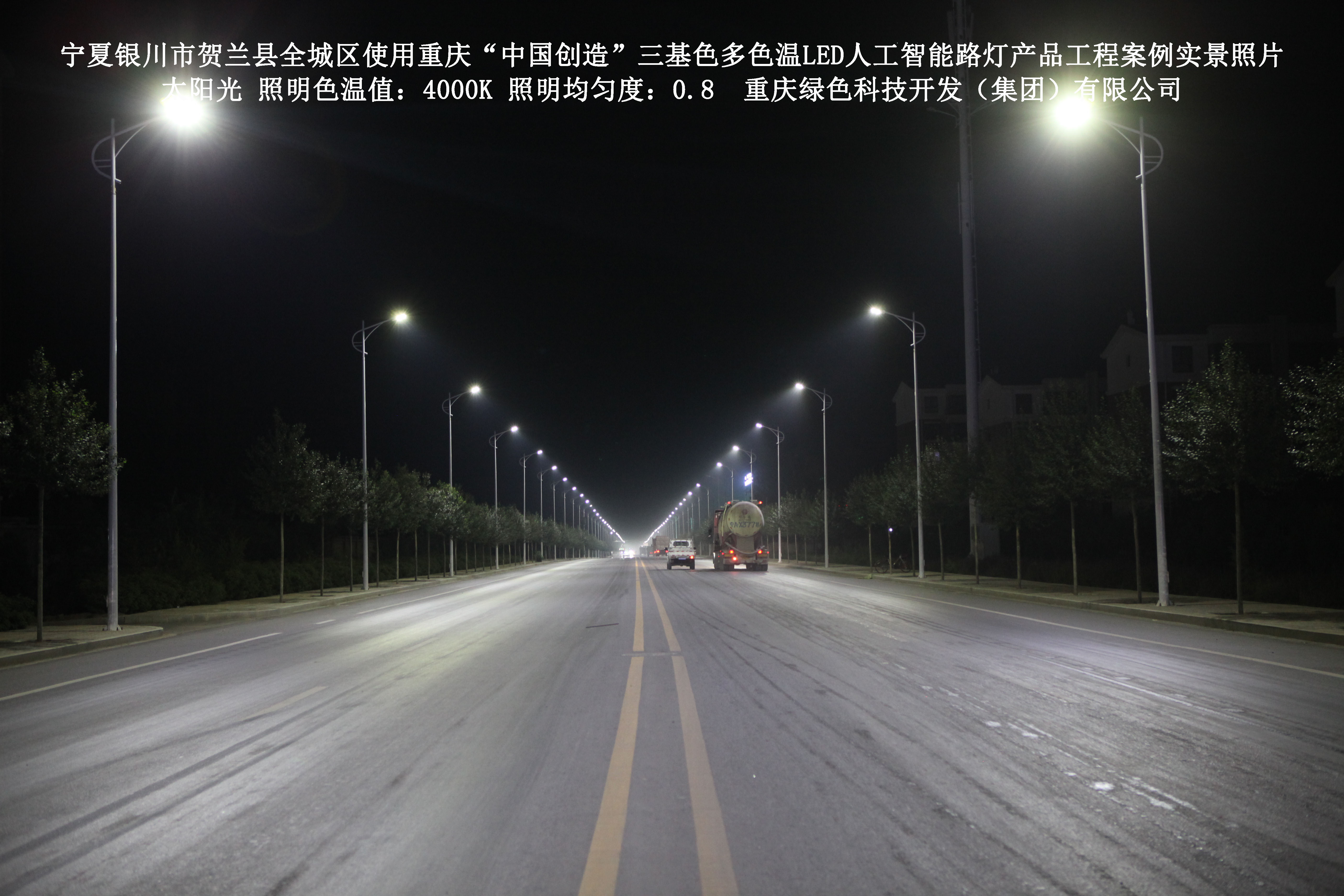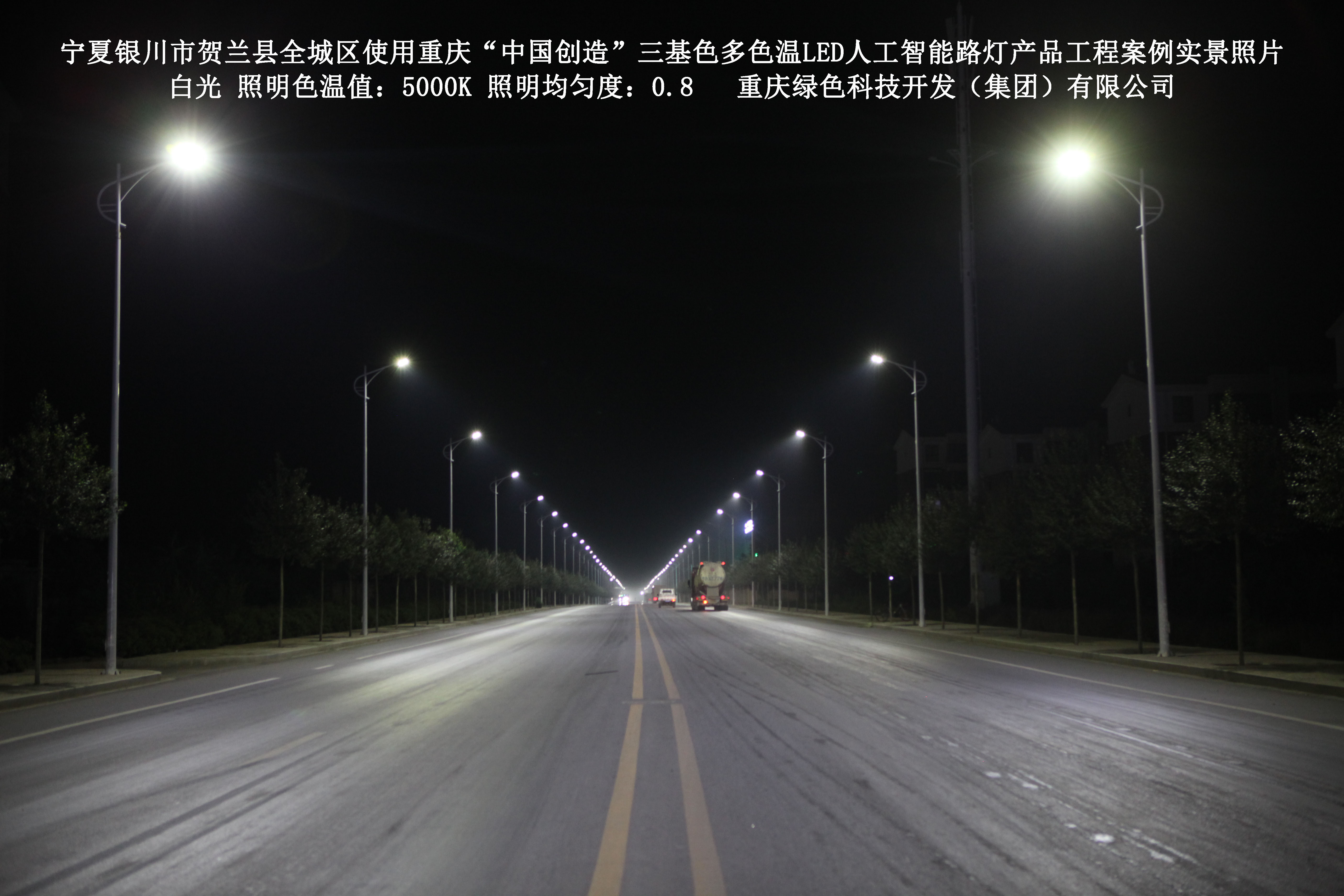 2017年12月,寧夏銀川市賀蘭縣城市管理綜合執(zhí)法局,使用了我司研發(fā)制造的重慶“中國(guó)創(chuàng)造”三基色多色溫LED人工智能路燈6348盞,對(duì)全城區(qū)實(shí)施了綠色照明科技節(jié)能改造工程,該工程已全面竣工。工程實(shí)施后,極大地提高了賀蘭縣全城區(qū)城市照明清晰度、燈光均勻度、舒適度。通過(guò)智能終端實(shí)現(xiàn)單燈感知、線纜防盜報(bào)警,與原高壓鈉燈相比,節(jié)能率60%以上,有效解決了關(guān)閉控制回路或間隔關(guān)燈方式造成的照明暗區(qū),確保行人和車輛通行的安全,實(shí)現(xiàn)城市路燈照明系統(tǒng)的智能化管理,推進(jìn)了智慧城市建設(shè)。