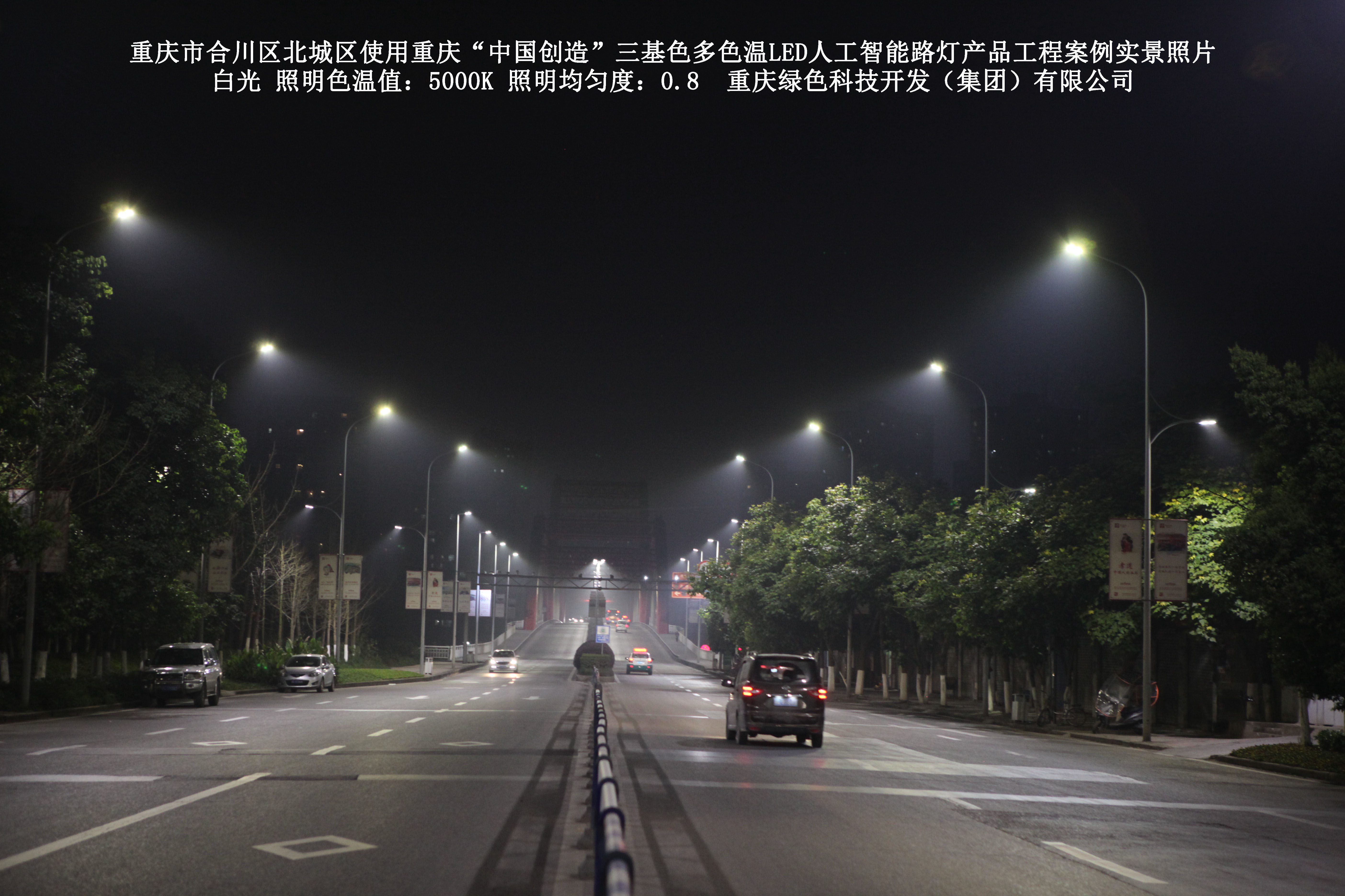 2019年1月,重慶市合川區(qū)城市管理局使用了我司研發(fā)制造的重慶“中國創(chuàng)造”三基色多色溫LED人工智能路燈5144盞,對合川區(qū)北城區(qū)實施了綠色照明科技節(jié)能改造工程,該工程已全面竣工。工程實施后,極大地提高了合川區(qū)北城區(qū)城市照明清晰度、燈光均勻度、舒適度。通過智能終端實現單燈感知、線纜防盜報警,與原高壓鈉燈相比,節(jié)能率60%以上,有效解決了關閉控制回路或間隔關燈方式造成的照明暗區(qū),確保行人和車輛通行的安全,實現城市路燈照明系統(tǒng)的智能化管理,推進了智慧城市建設。