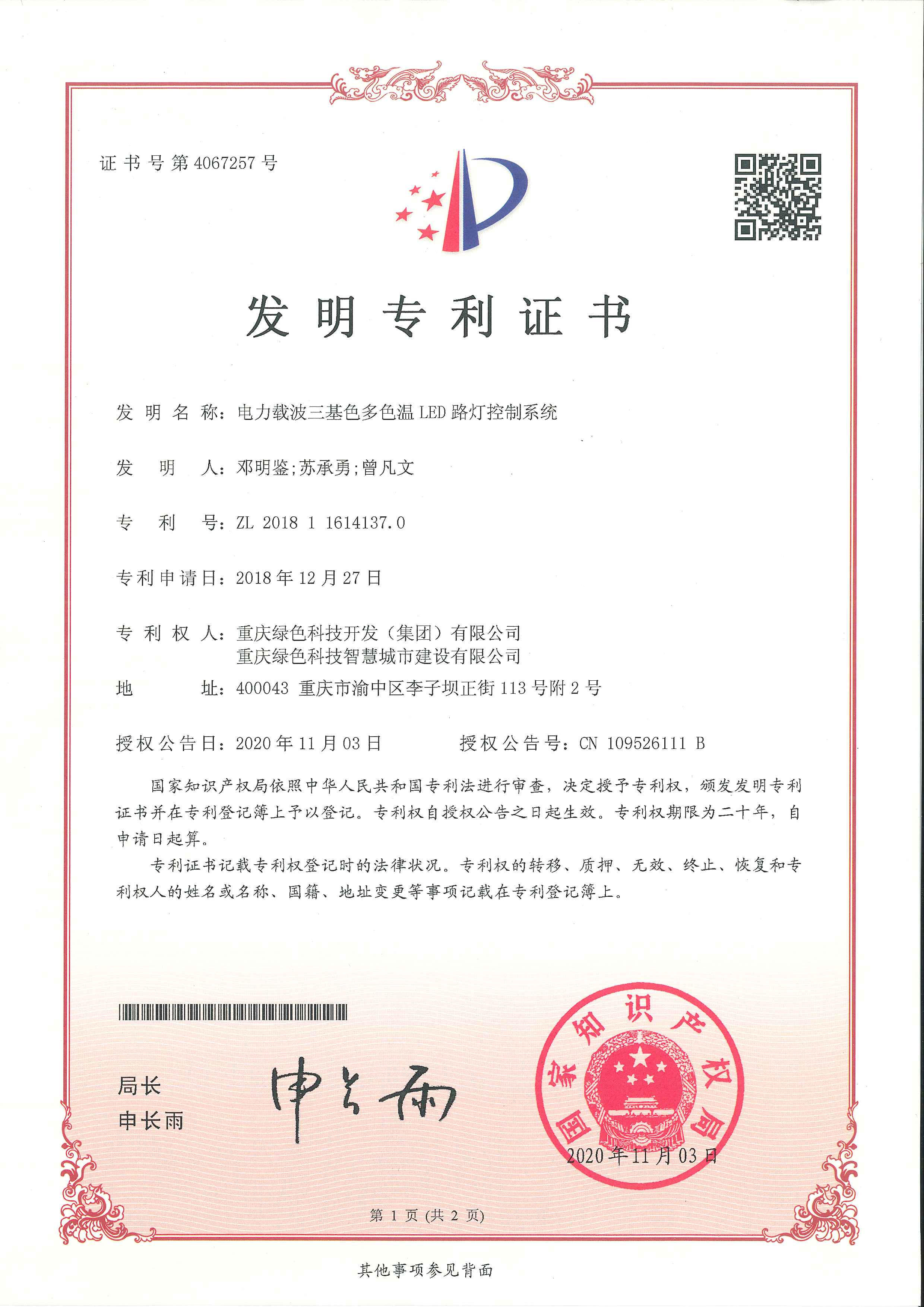 近10年來,重慶綠色科技開發(fā)(集團)有限公司利用自主知識產(chǎn)權(quán)研造多色溫全光譜LED智慧路燈技術(shù)及產(chǎn)品,是重慶“中國創(chuàng)造”領(lǐng)跑世界城市路燈照明領(lǐng)域的最先進技術(shù),也是取代普通單色溫LED路燈照明技術(shù)。2019年5月,利用該技術(shù)實施的“物聯(lián)網(wǎng)多色溫LED智能路燈綠色照明工程”被評為“國家住建部綠色照明科技示范工程”。