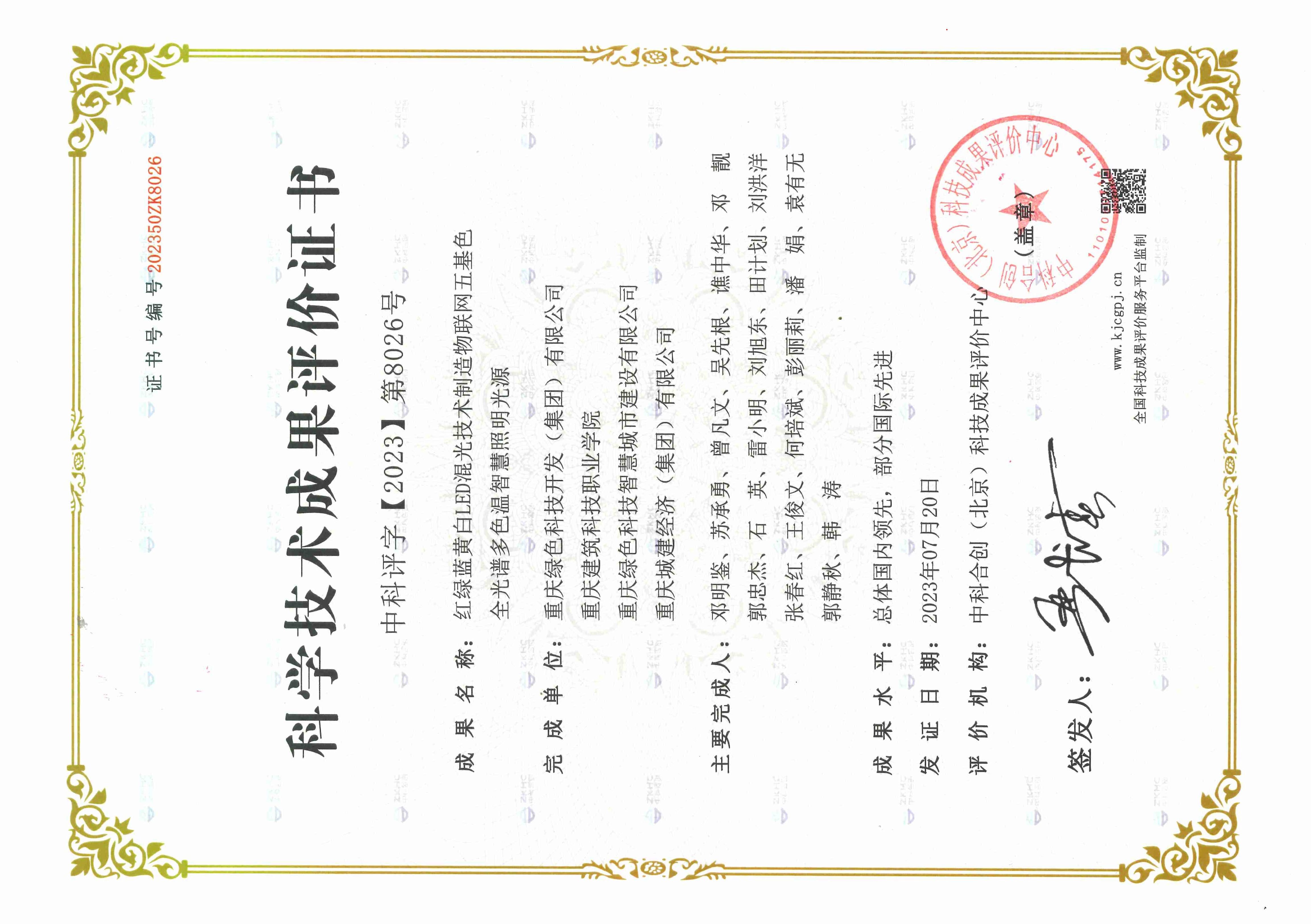 2023年7月11日,中科合創(chuàng)(北京)科技成果評(píng)價(jià)中心組織專(zhuān)家,在北京對(duì)我司“紅綠藍(lán)黃白LED混光技術(shù)制造物聯(lián)網(wǎng)五基色全光譜多色溫智慧照明光源”項(xiàng)目進(jìn)行了科技成果評(píng)價(jià)。